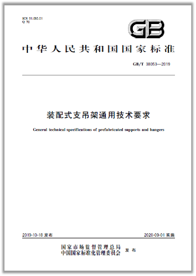 由蘇州華固參與起草的《裝配式支吊架通用技術(shù)要求》GB/T 38053-2019于2019.10.18日正式發(fā)布。